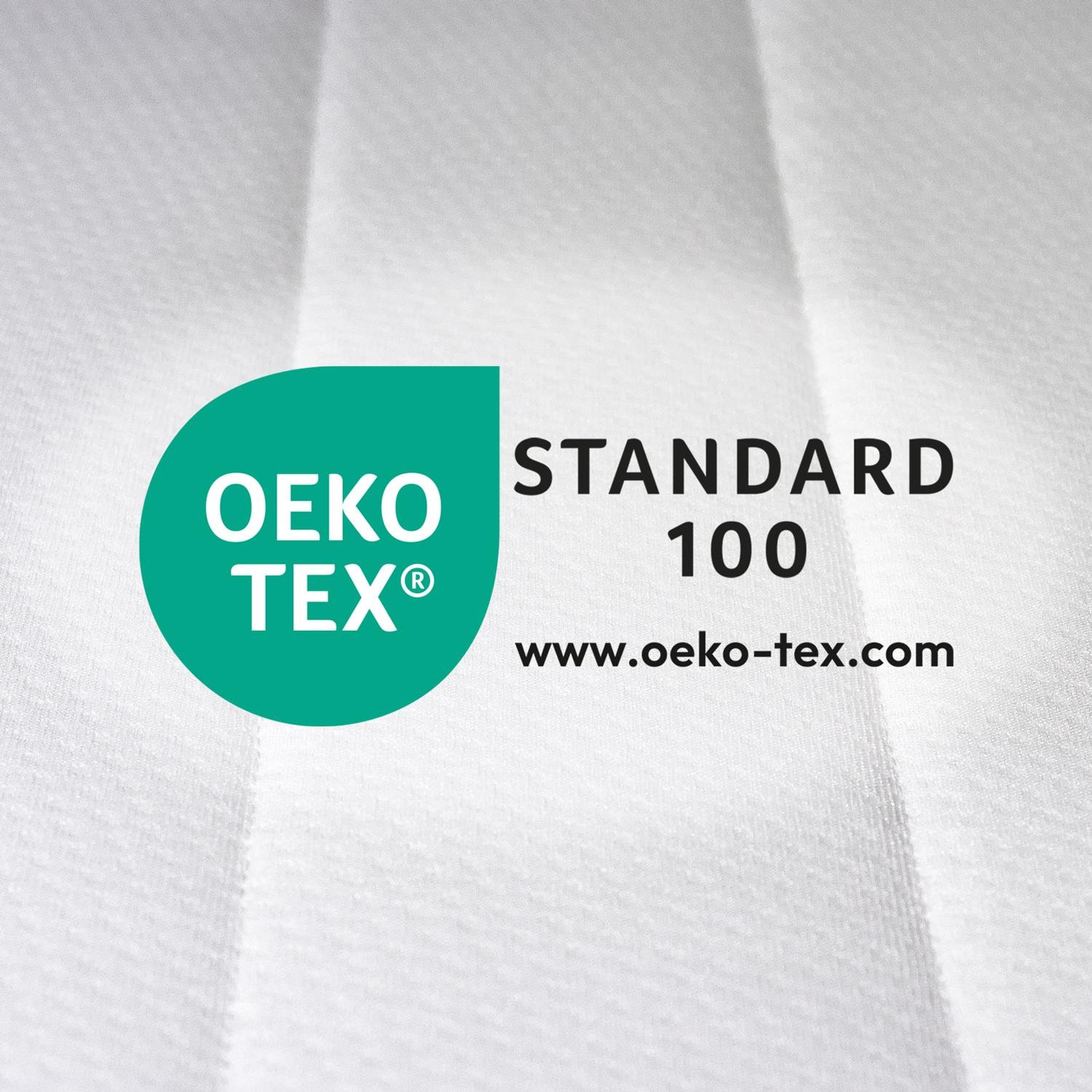 Nos toppers sont conformes à la norme OEKO-Tex Standard 100. Vous pouvez être sûr que tous les composants de cet article, c'est-à-dire également tous les fils, les fermetures à glissière et autres accessoires, ont été contrôlés quant à la présence de substances nocives et que l'article ne présente donc aucun risque pour la santé.